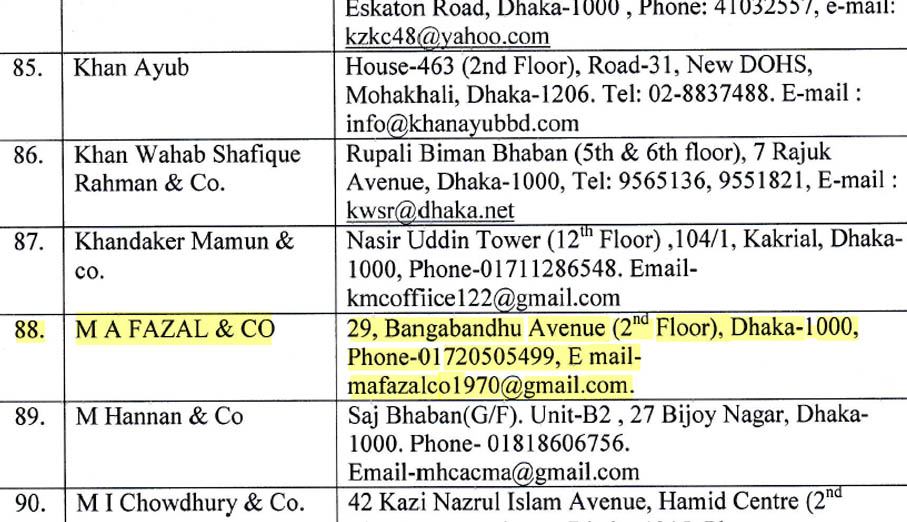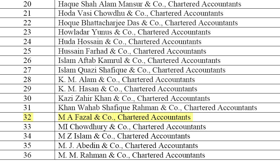 List of CA firms 2024-2025. Approved by The Bureau of NGO Affairs, The Peoples Republic of Bangladesh.