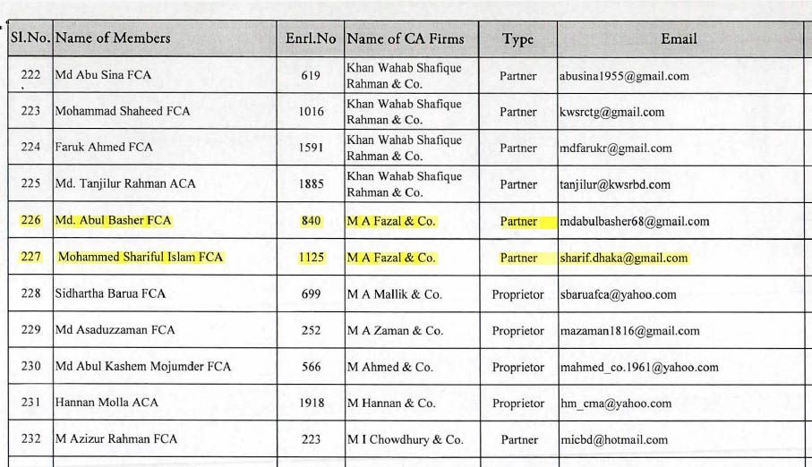 The Institute of Chartered Accountants of Bangladesh (ICAB). Contact Information of Practicing Members of ICAB As of 28 August 2022.